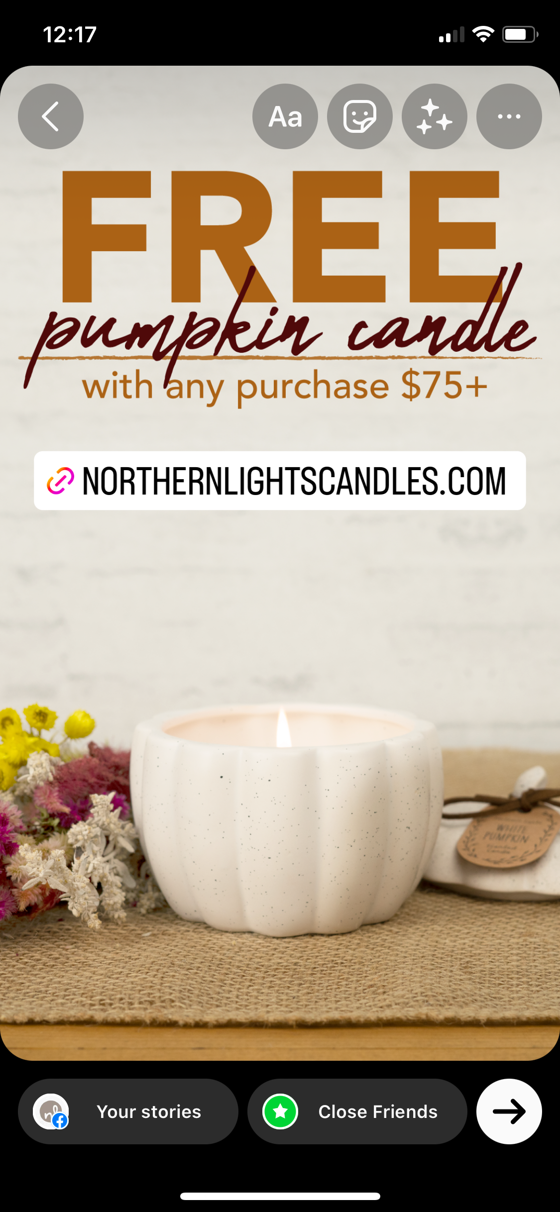 This candle was a large account item and not branded for retail and wholesale purposes and was only available online during the sale. For these reasons, we didn't want to add it to our social media as a permanent post. We decided that adding the photo as a promotional story would be more appropriate. The product page was only live during the sale. It was archived on October 17th at 12:00AM.